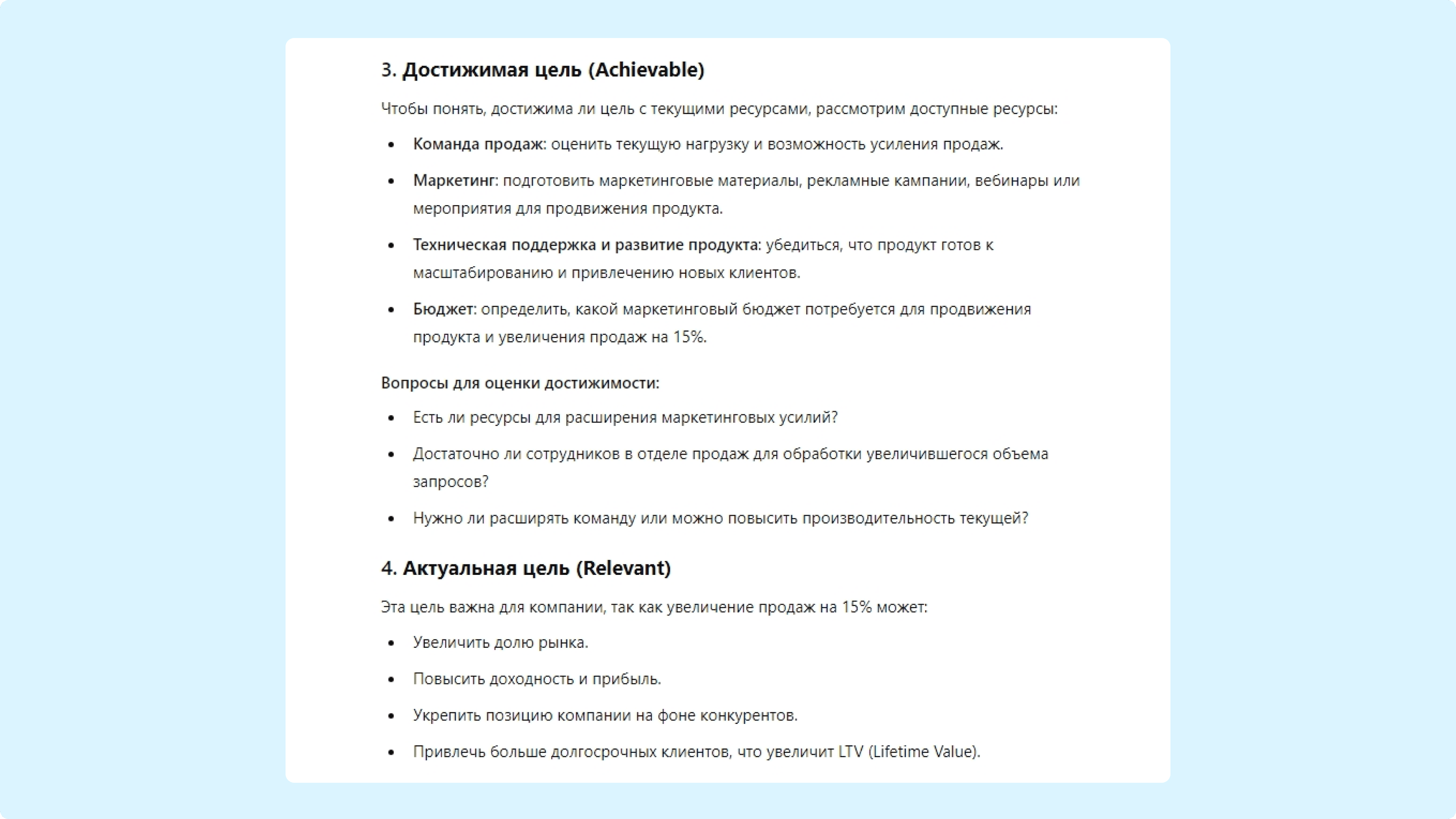 - Насколько достижимы эти цели с текущими ресурсами?