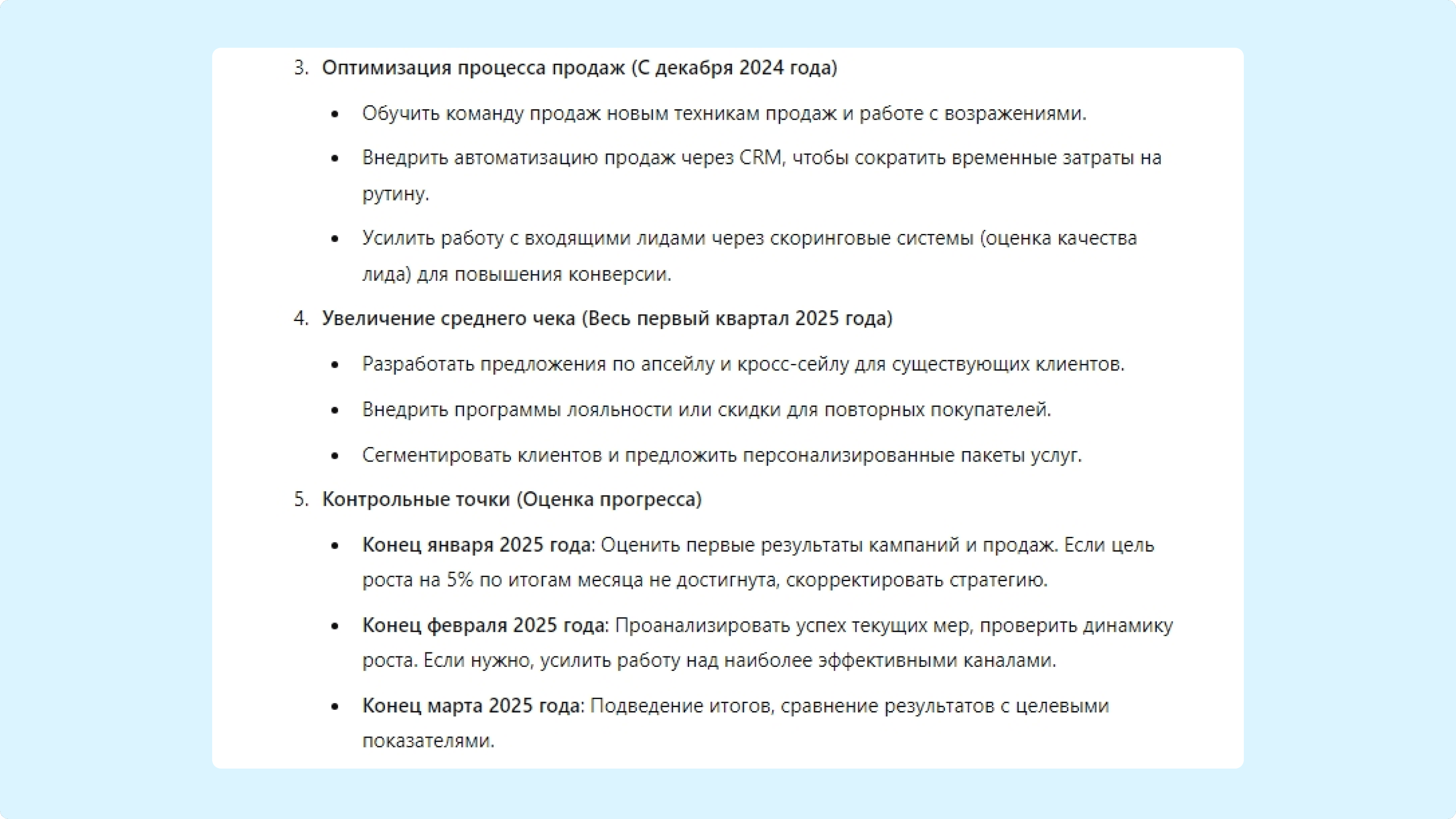 - Стратегия должна включать конкретные шаги и контрольные точки.